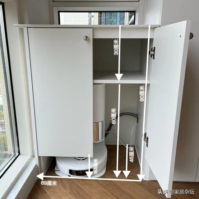 ①、位置设计。对于扫地机器人的基站,常选位置是阳台柜和玄关柜。尺寸就根据基站的尺寸预留,保证它可以嵌入进去就可以了。