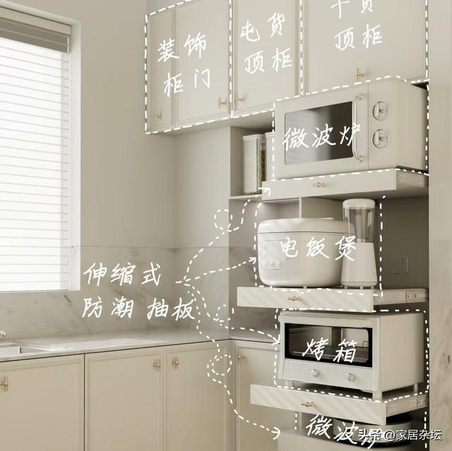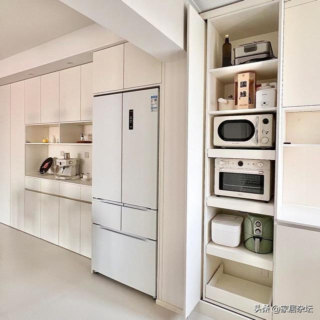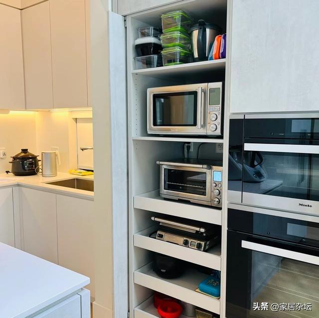 这些电器,如果我们没有考虑收纳,往往只能摆在厨房台面上。时间长了,台面满满当当,不仅容易落灰,而且用着很不方便。