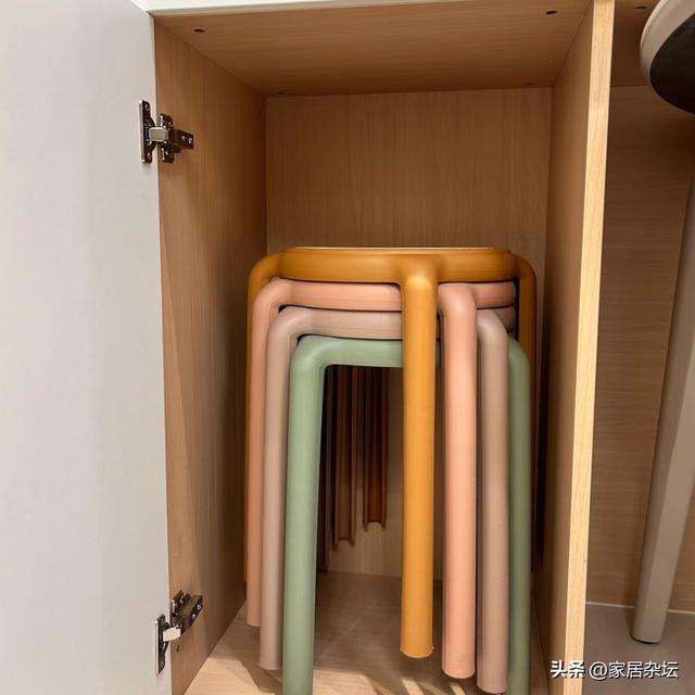 为了考虑以后家里来客人,往往需要备用一些凳子。这些凳子,如果没有地方收纳,是非常占地方的。